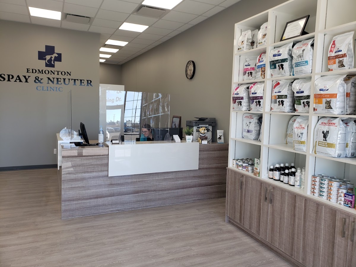 Edmonton Spay and Neuter Clinic is a full-service animal hospital located on the Edmonton Northeast Side offering spay and neuter procedures along with vaccinations, wellness checkups, tick and flea treatment, dietary management, emergency care, on‑site laboratory services, nutrition consultations, micro‑chipping and pet identification. The clinic serves Edmonton pet owners needing routine veterinary care, preventive health services, and specialized treatments such as hernia repairs.