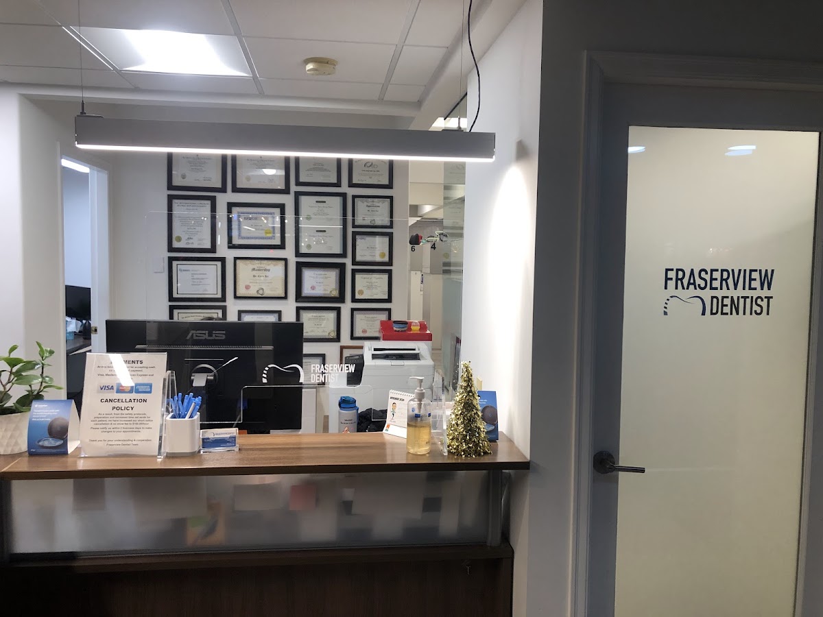 Read moreFraserview Dentist is a family dentist located in South Vancouver serving the Fraser Street community. The practice offers comprehensive dental treatments under one roof with an authorized Canadian Dental Care Plan provider, extended Saturday hours, and all services performed in‑house by an experienced team. Their renovated office provides convenient appointments for new patients seeking full‑service care and the clinic also accepts new patients. The practice emphasizes personalized care and a welcoming environment for families. Patients appreciate the calm, professional atmosphere.