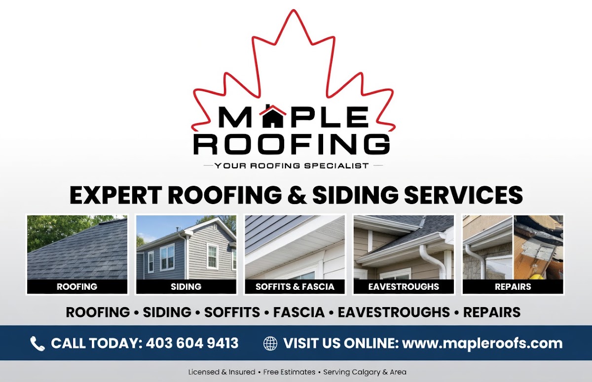 Read moreMaple Roofing provides roof repair, replacement, residential roofing, windows and doors, siding repair and replacement services in Calgary, AB. The company specializes in full‑service residential roofing using various materials such as asphalt, rubber, metal, and flat roofs. Their approach emphasizes a dedication to excellence that is described as a way of life, delivering high quality work quickly and cleanly. They serve homeowners and commercial property owners, offering comprehensive solutions from minor repairs to full system installations.