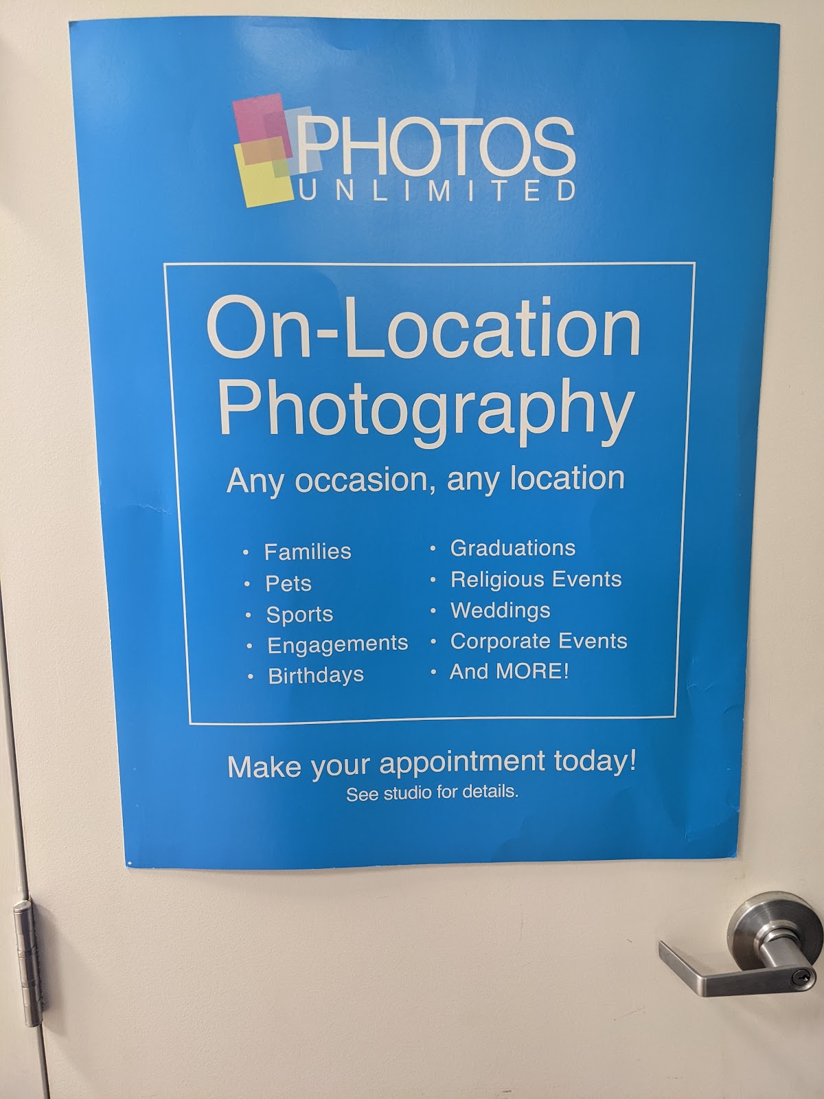 Browse available services, pricing, durations, and booking options for Photos Unlimited Portrait Studios.