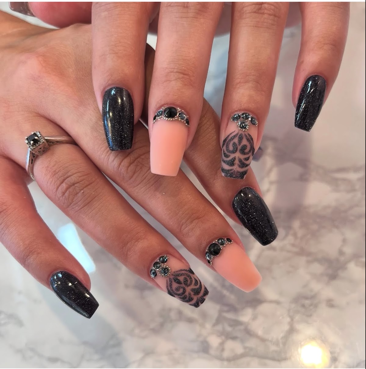 I’m a creature of habit—I love moody nails. And Kateryna makes my moody nail dreams come true. She’s meticulous, patient, and incredibly detail-oriented. She never rushes and is so unbelievably talented, funny, and kind. People ask me all the time who does my nails, and if they’re press-ons. Kateryna is a nail queen, and I’m so glad I found her. I’ve even tried stepping out of my comfort zone with brighter colours… but black is my sunny colour, and she never judges me for it. :)