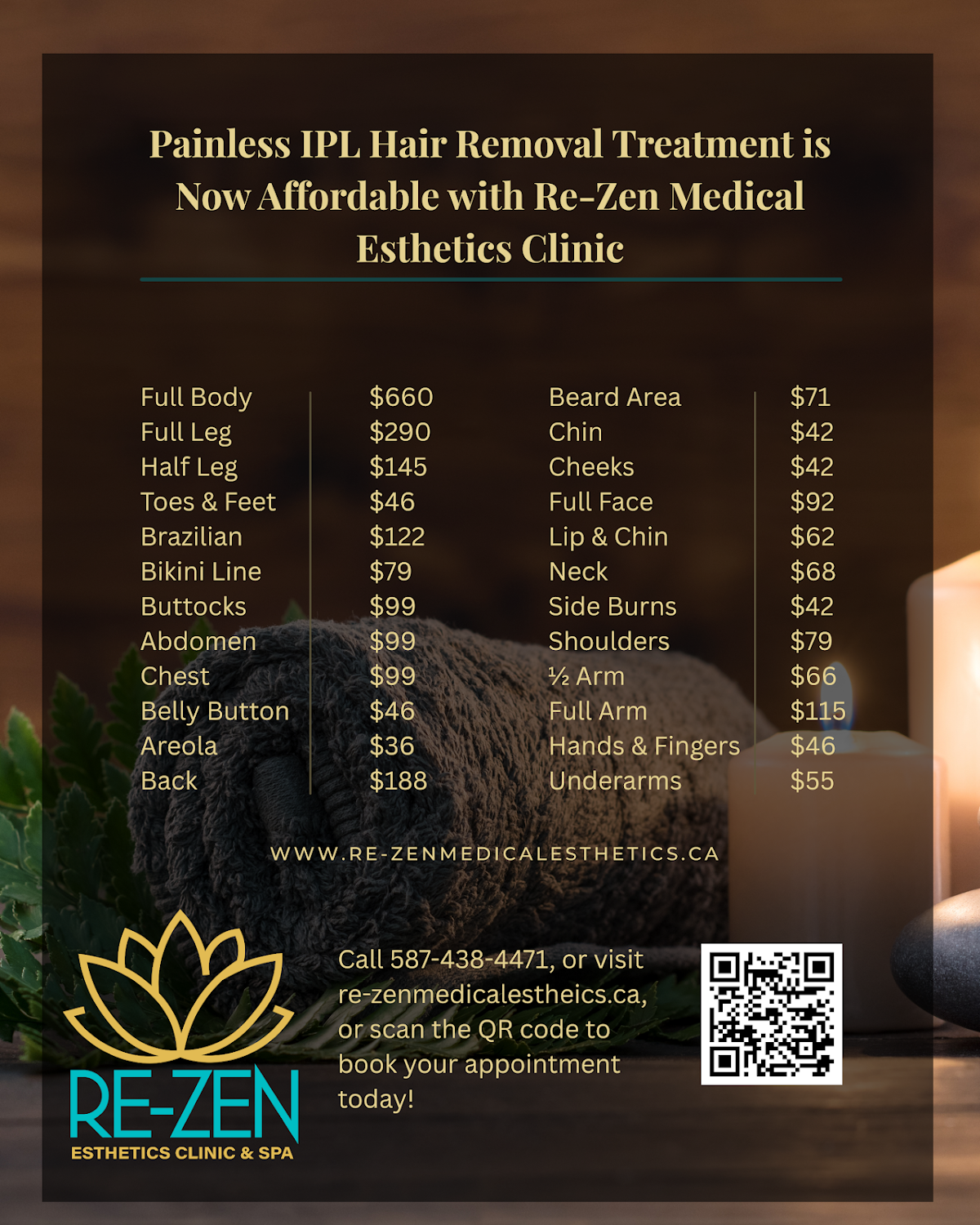 Browse available services, pricing, durations, and booking options for Re-Zen Medical Esthetics Clinic & Spa.