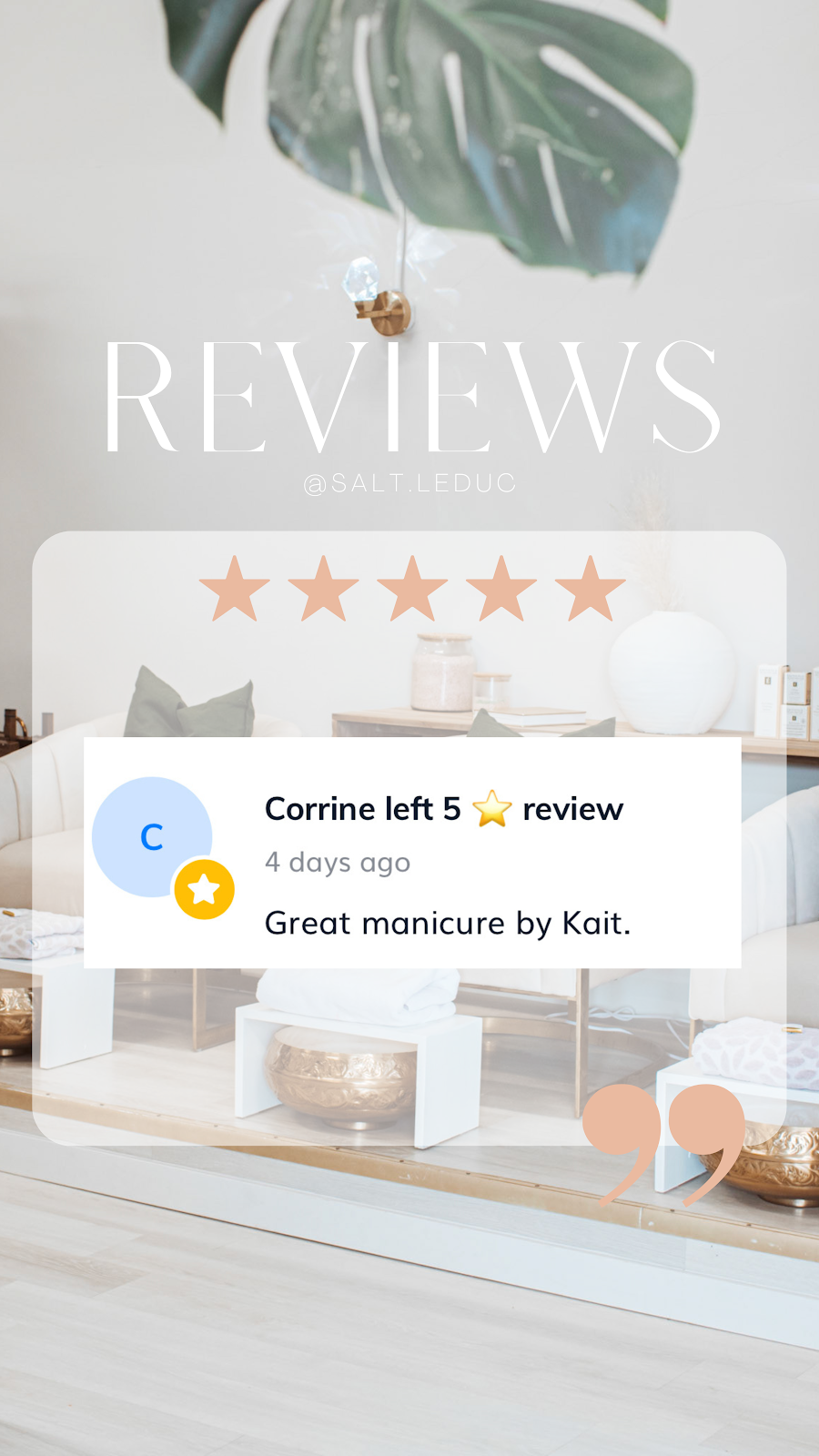 Read customer feedback, ratings, and service experiences for SALT Day Spa.