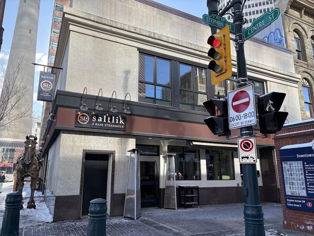 SALTLIK Calgary is an upscale steakhouse located on Stephen Avenue in downtown Calgary, Alberta, offering premium cuts and a relaxed dining atmosphere. The menu features dishes such as Hunter Chicken + Stampede Sour, SALTLIK Salad, 18oz Ribeye with Certified Angus Beef Prime Sirloin, and Sticky Toffee Pudding, accompanied by wine and craft cocktails. It also provides private dining, group catering, gift cards, and event services for local gatherings.