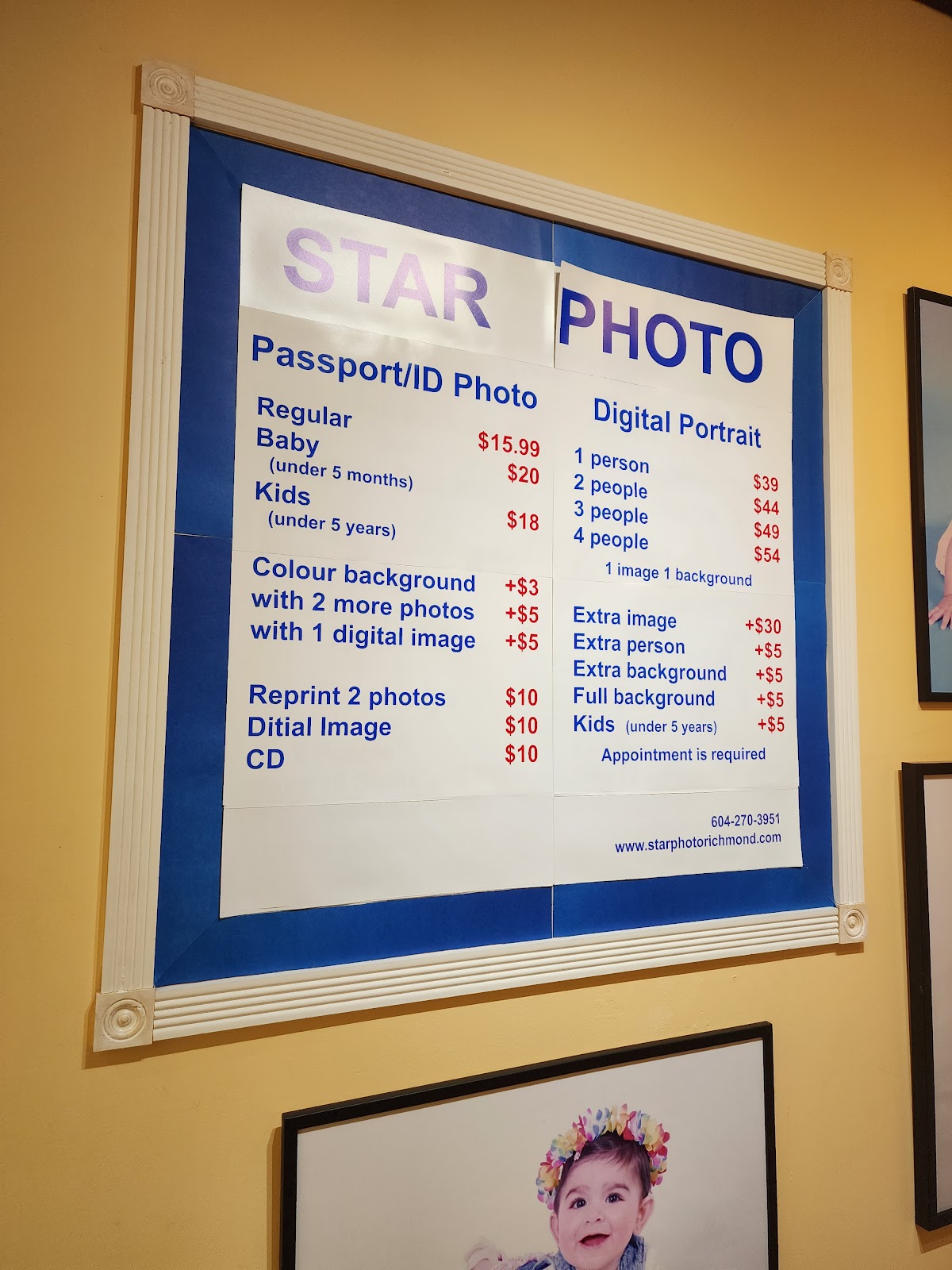 Browse available services, pricing, durations, and booking options for Star Photo.